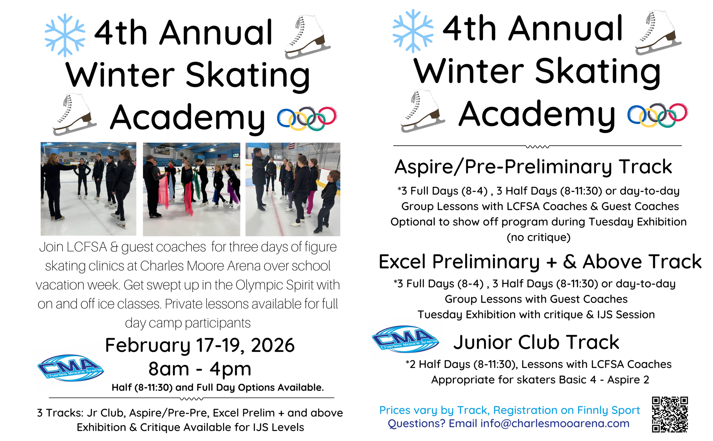 CMA Winter Skating Academy. Thank you to guest coaches Fred Palasak, Melanie Lambert & John Mucko. Additional thank you to physical therapist, Brian Wentworth , for coming to discuss injury prevention with our skaters!